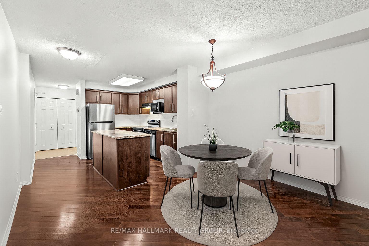 Theme of this property: Lifestyle of the Suburban Oasis. Unbeatable location! Only 7 min walk to Transitway rapid bus system to downtown, or a 5 min walk across the street to Chapman Mills Ultra Plaza. It has all the food, shopping and entertainment you need! Take possession anytime... Move in or buy as an investment. Easy to rent. This Stacked Condo townhouse is two-stories with the living area on the main floor and 2 bedrooms with a full bathroom and laundry in the basement. Inside is FRESHLY PAINTED, as you walk into the foyer, there's a powder room and then step into the OPEN CONCEPT area with Kitchen, living room and dining area with warm hardwood floors! The KITCHEN will 'WOW' you compared to others. Mobile MATCHING Breakfast bar/Kitchen island so you can adjust to your style! Great to entertain and enjoy with your family and friends. Low maintenance, perfect for the lifestyle enjoyment and convenient living. NO Water/Sewer bill! (included in condo fee) Property taxes were only $204/month. Doesn't have many stairs... and the 2 bedrooms stay cool in the basement area. Parks and schools are all near here. Walk to rapid bus transit or take main streets into town. There is a shaded backyard area for BBQ and such... walk from the living room to the back deck and open grass area. Condo allows BBQ for these units ONLY, owners on the top floor unit don't have this feature! The basement has 9ft ceilings in the bedrooms, big windows and large bedrooms. Big bathroom with SEPARATE shower and ROMAN bathtub. It is a bright semi-basement style, with a lot to offer. Your parking gets plowed by the condo corp... LOW to NO Maintenance. Stainless steel appliances in the kitchen and washer and dryer are included. Want to see great value? Come take a look... **WE WELCOME ANY SERIOUS OFFER**