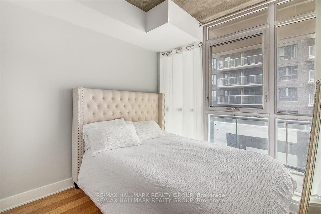 Modern loft-style 1-bedroom condo with underground parking and storage locker included, ideally located at the entrance to the ByWard Market and steps to the Rideau Centre, University of Ottawa, and rapid transit. This bright open-concept unit offers approximately 652 sq ft (including a large double-length balcony), featuring floor-to-ceiling windows, upgraded flooring (no carpet), kitchen island, and granite bathroom finishes. The functional layout provides comfortable urban living with natural light and outdoor space rarely found in similar units. Condo fees include heat, hydro, and water, simplifying monthly expenses. Residents enjoy premium amenities including a fitness centre, lounge, reading areas, landscaped terrace with BBQ space, green space, and reflection pool. Located on George Street with convenient access to downtown amenities while positioned away from the busiest market activity. Visitor parking available. An excellent opportunity for affordable city living, first-time buyers, or investors seeking strong central location appeal.